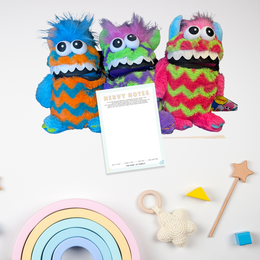 Nervy Notes Worry Monster Set - Large Worry Monster - A6 Nervy Notes - UV Light Pen -Boys - Girls - Children's Mental Health - Educational Toy - Gift - The Honest Family