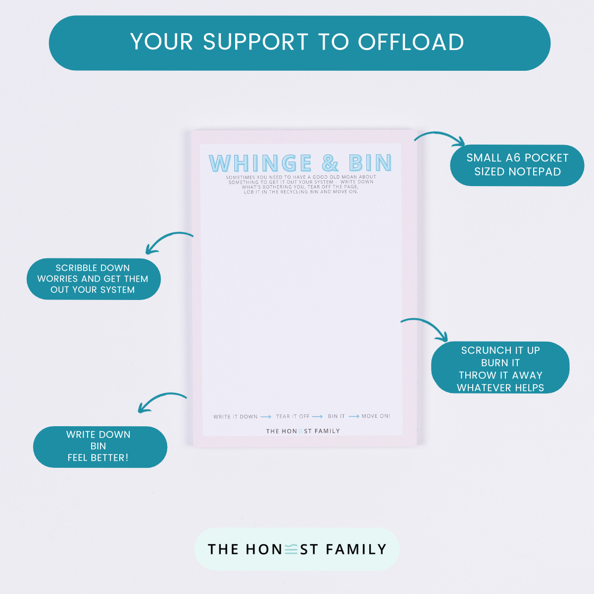 Notepads are a great way of being able to express emotion without the feeling of commitment like a journal or a diary would impose. Being able to tear off the page and screw it up, throw it away or throw it in the fire can be such a cathartic experience.